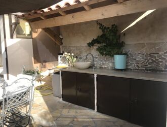 d'une cuisine ouverte entièrement équipée donnant sur un salon séjour exposition sud donnant sur terrasse et jardin avec sa cuisine d'été, une buanderie
